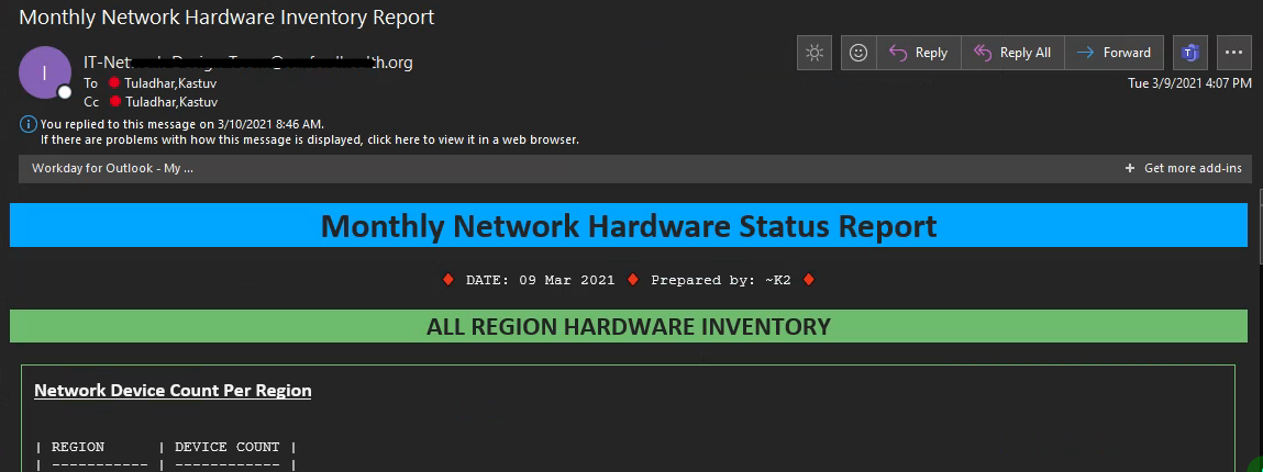 <h1 style=text-align>Monthly Network Hardware Status Report</h1>